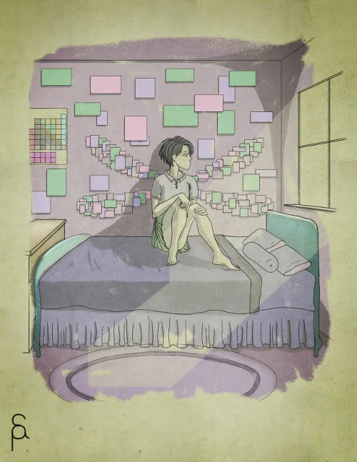 The other girls nod. But Bernice does not understand. This is not enough to understand. Her own bedroom walls are heavy with bright dream-filled art, the periodic table, and posters of Shirley Ann Jackson, Chien-Shiung Wu, and Rachel Carson.